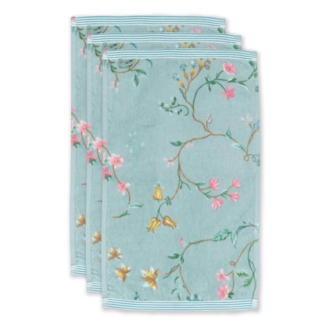 Tauchen Sie ein in die bezaubernd romantische Welt von Pip Studio mit fröhlichen, bunten Dessins voller Lebensfreude und Farbenvielfalt. Mit dem eleganten Gästetuch-Set von Pip Studio verwandeln Sie Ihr Bad in eine Wohlfühloase. Das liebevoll gestaltete Design besticht durch zierliche Blütenzweige und kleine, farbenfrohe Fantasieblumen. Die Tücher bestehen aus reiner, hautsympathischer Baumwolle in besonders samtweicher Velours-Qualität. Sie sind pflegeleicht und strapazierfähig, so dass Sie lange Freude daran haben werden. Mit den Badtüchern der Serie LES FLEURS von Pip Studio können Sie Ihr Badezimmer in einem einheitlichen, unvergleichlichen Stil ausstatten oder nach Herzenslust mit anderen Serien von Pip Studio kombinieren. Wir bieten Ihnen die Tuchserie in verschiedenen Größen und unterschiedlichen Farbvarianten in unserem AMBIENDO Shop an. Gönnen Sie sich den angenehmen Komfort!